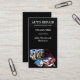 A cool mobile automotive repair service mechanic business card template designed with a retro car engine in the background and carbon fibre style graphic digitally printed as a backdrop. A masculine modern design in vertical format you can customise online.