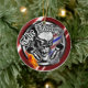 Cool Barber Skull with Flaming Razor Ceramic Ornament