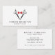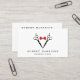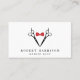 Simple masculine business card for barbers and barbershops that features modern minimal typography and an abstract illustration of a red bowtie and scissors forming the lapels of a jacket.
