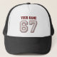 Cool Baseball Stitches - Custom Name and Number 67 Trucker Hat