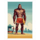 Cool Bigfoot poster in the style of the WPA 1930s national park posters. This cool WPA-themed poster features Bigfoot as an American lifeguard standing on a Miami beach, complete with his buddy board.
