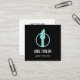Unique square business cards for guitar instructors, music teachers, guitar lessons, musicians or guitar players voice actors or actresses, voiceover artists, vocal talent, and audio recording professionals feature an electric guitar headstock in bright aqua on a black background, with two lines of custom text in white lettering. Customize the back with your full contact details, displayed beneath a smaller matching headstock illustration. Whether your specialty is classical, acoustic, electric, or bass, these modern and professional business cards are a perfect way to gain clients and brand your business!