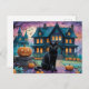 Cool Black Cat, Jack O Lanterns, Spooky House Holiday Postcard