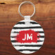 Cool BLACK STRIPES Brushstroke + Custom Monogram Key Ring