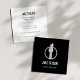 Unique square business cards for guitar instructors, music teachers, guitar lessons, musicians or guitar players voice actors or actresses, voiceover artists, vocal talent, and audio recording professionals feature an electric guitar headstock in white on a black background, with two lines of custom text in white lettering. Customize the back with your full contact details, displayed beneath a smaller matching headstock illustration. Whether your specialty is classical, acoustic, electric, or bass, these modern and professional business cards are a perfect way to gain clients and brand your business!
