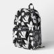 Cool Black White Modern Floral Pattern Monogrammed Printed Backpack