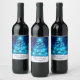 Cool Blue Christmas Tree with Sparkling Lights Wine Label