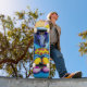 A cool blue elephant with hoodie wearing pink glasses on colourful background design.