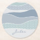 Cool Blue Green Curved Stripes Abstract Waves Name Round Paper Coaster