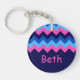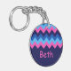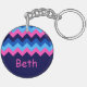 Cool Blue Pink Chevron Monogram Circle Keychain