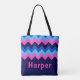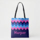 Cool Blue Pink Chevron Monogram Tote Bag