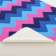 A medium size, Sherpa blanket featuring a pretty, colourful pattern design of blue and pink chevrons.
