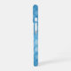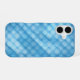 This phone case features a stunning design of deep and light blue tones, reminiscent of water and sky. White diagonal lines streak across the surface, giving the impression of light penetrating a tranquil body of water. The unique quilted-like texture adds depth and dimension, creating a dynamic visual effect that shifts with the light.