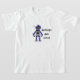 A cool royal blue robot with all the bells and whistles. The saying says 'robots are cool' change as desired.