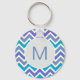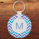 Cool Blue Sporty Chevron Pattern Monogram Key Ring
