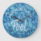 Cool Blue Tile Swimming Pool Family Name cUSTOM Large Clock