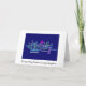 Passover-related words and phrases ornament the front of this card, done in shades of blue, aqua, and purple. Multi-hued Stars of David accent the wording.