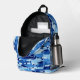 Super fun backpack featuring a blue camouflage shark pattern and your custom name. Add an extra bonus line of text - phone number, team name, saying, etc. - or delete. Roomy enough for books, computer, sports gear and more - or use as a travel or sleepover bag too. Cool and colourful, yet very functional - win, win.