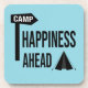 Simple Text graphic design showing a little tent a camp sign and a Text saying: Happiness ahead.