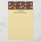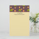 Writing paper with a pattern along the top borderand your personalised name. Designed with a fun camping themed pattern. Set on a reddish brown background. Elements in the pattern include a campfire, a tent,. a guitar, a shovel and backpack.