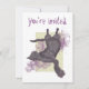 Funny grunge cartoon cats birthday invitations. Black cat on a paint splattered purple and olive green background. Cool fonts ready for you to personalise. Perfect for kids party invites but would work well for adults celebrations too.