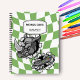 video game controller breaking trough a green and white retro chequered background. To make it extra special, it is also monogrammed and personalised with name or initials or any text you like. This cool notebook is perfect for video games lovers, a great addition to your kids school supplies.