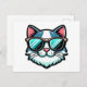 Send a splash of style with this eye-catching postcard featuring a cartoon-style cat rocking reflective teal-striped sunglasses. With blue and white fur, pink ears, and a confident vibe, this design blends feline charm with pop art flair. Perfect for cat lovers, art enthusiasts, and anyone who enjoys playful, modern stationery with personality.