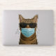 hyper-realistic white cat rocking cool black sunglasses and a face mask.
