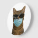 hyper-realistic white cat rocking cool black sunglasses and a face mask.