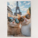 Two stylish cats pose in front of the Eiffel Tower, rocking sunglasses and capturing the ultimate travel selfie on a sunny day in Paris.