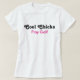 Stoere vrouwen / meisjes spelen Golf. Wit shirt met zwart en donker rood. Leuk als cadeau of voor jou als je van Golfen houdt.