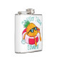 The flask itself is fine. It’s a cheap flask, obviously bought in bulk, however am prepared to overlook that. Given that it is a personalized item, I would have liked to have seen gift boxing instead of the generic packaging. Terrible printing, and/or quality. It’s a cheap, tacky vinyl. It is not cut straight and is also applied in a way that it is overhanging the bottom, causing the glue to catch on items and it will eventually roll and tear, damaging the wrap.