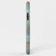 Classy, fun, contemporary mocha brown, beige, teal blue-green, and grey striped watercolor pattern design on faux leather texture background. Room for customisation or personalisation with a name, monogram, or initials of your choice. A stylish, original, and cool cover for the savvy, art-loving hip trend who wants to protect their phone from dust, dirt, and wear and tear. Available on a variety of decorative, fashionable, artistic, trending, modern, and cool iPhone 6,7 8, X, XR, 11, 12, 13 Mini, 14, 15 Plus, Max cellphone cases. Show off your style, look fashionable, and feel stylish with a unique design on a mobile device accessory of your choice.