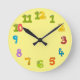 Adorable yellow clock face with "animals" fashioned from numbers with eyes that will delight your kids. Great for a child's room or playroom.