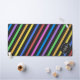 Multi coloured diagonal stripes: red, green, blue, pink, purple, magenta, neon green, yellow.
