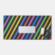 Cool colourful retro stripes geometric Monogram Desk Mat