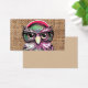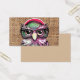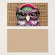 A cool pink purple colourful tattoo funny owl with glasses. A unique design on brown jute texture background. The perfect humour gift idea for anyone on any occasion.