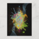 Cool colourful watercolour splatters music notes blue treble clef white faded swirls dots half tone circle lines, pink orange yellow green blue colours black background image print
