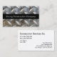 Construction or building contractor business card template including an industrial metal plate background and text along with text layout you can customise online. Designed for a construction company, builder, building contractor.