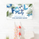 Simple Cool Blue Boy's Pool Party Birthday Banner. Design features a simple white background decorated with tropical foliage, a beach ball, sunglassess and a fun POOL Party heading! The modern sans font template is super easy to customise using the template provided. Perfect invite for boys of all ages!