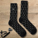 Simple Electric guitar drawing pattern black and white socks with personalised monogram using the easy to use template and you have the perfect gift for a guitarist, musician and music lovers. Any guitar player will tell you that you can never have to many guitars. This cool minimalist monochrome musical instrument modern design celebrates the cool energy of this wonderful musical instrument. Original artwork by artist Catherine Sweetman