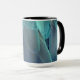 Mod coffee mug in vibrant blue feather graphic