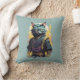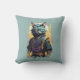 Cool Fire Splash Grey Ninja Cat Warrior Cushion