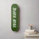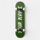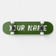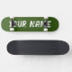 Skateboard deck featuring a rich forest green design with customisable name space. Perfect for street skating, tricks, or as a stylish and personalised gift for skateboard enthusiasts.