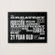 'The greatest most awesome excellent fantastic amazing magnificent super fabulous terrific superb brilliant Twenty One year old in the world ....ever!' is a cool modern gift for fun loving Twenty One year olds : presented in eye catching combination of always fashionable black and classic stylish white in an urban rock and roll attitute blast of fonts and more fonts.