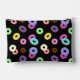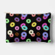 Cool and fun colourful doughnuts pattern black bag Accessories. Pattern made from illustrations of many delicious pastry doughnuts with all kinds of coloured glazing, chocolate, vanilla and all the colours, blue, yellow, pink, purple, cyan..