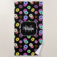 Cool fun colourful doughnuts pattern black Monogra Beach Towel