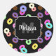 Cool fun colourful doughnuts pattern black Monogra Classic Round Sticker