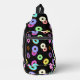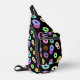 Cool fun colourful doughnuts pattern black sling bag