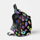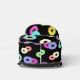 Cool and fun colourful doughnuts pattern black bag. Pattern made from illustrations of many delicious pastry doughnuts with all kinds of coloured glazing, chocolate, vanilla and all the colours, blue, yellow, pink, purple, cyan..